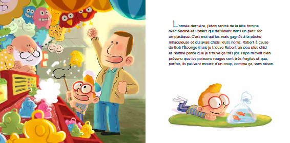 Delphine de Vigan nous propose une histoire charmante et pleine de tendresse, celle d’un petit garçon confronté à la mort de son poisson rouge. Les illustrations de Sess complètent admirablement bien ce récit qui peut aussi aider les parents à trouver les mots justes.