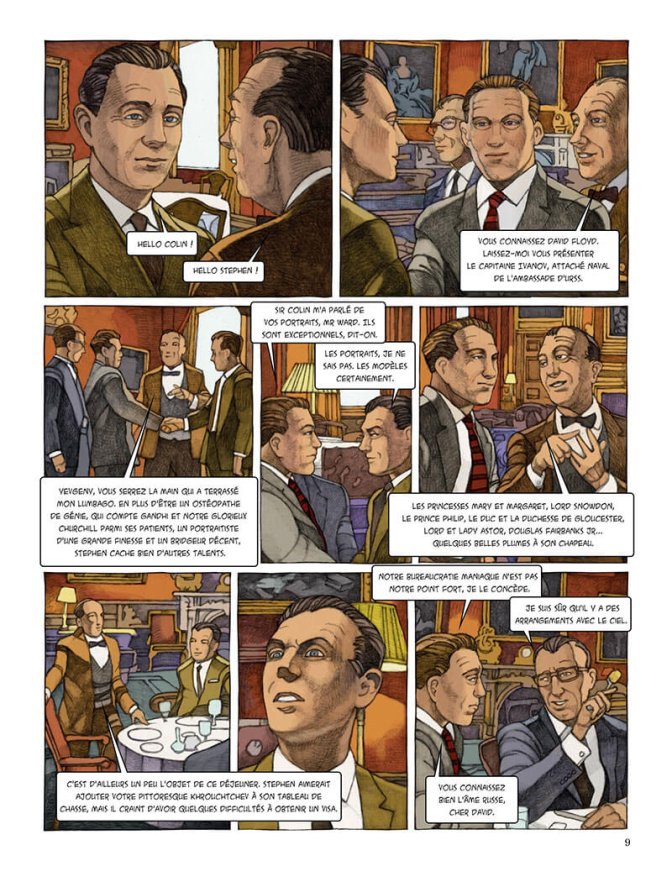 Critique : Cette enquête reprend des faits survenus il y a plus d’un demi-siècle en s’appuyant sur une documentation volumineuse qui détaille les faits le procès et les témoignages. Une question s’impose : quelle est la part de vérité et celle de fiction dans cet album né de l’exploitation de cette masse d’archives ? La réponse impliquerait sans aucun doute de réaliser le même travail scrupuleux de vérification par lequel Jean-Luc Fromental est passé pour aboutir à cette histoire qui se met à la place de Stephen Ward, acteur secondaire mais bouc émissaire de la célèbre affaire Profumo qui empoissonna la vie des politiques – en particulier conservateurs – de l’Angleterre des années 60, sur fond de Guerre froide et de mœurs coupables. Ce scandale s’inscrit dans une société des Sixties à bien des égards conservatrice sur le plan des mœurs, bien que beaucoup souhaitent une vie plus libre. L’affaire se comprend ainsi le contexte de son époque, et c’est ce que parvient à faire le duo Fromental / Hyman.