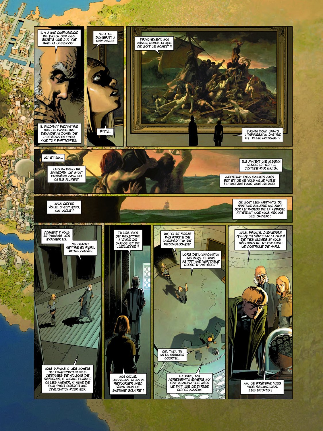 Graphiquement, ce nouveau tome n’a rien à envier aux précédents : un style soucieux du détail, faisant la part belle à l’espace et aux vaisseaux, sans oublier les références aux grands artistes. Les planches sont belles et ordonnées, comme une équation quantique du grand Kalish.