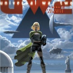 La Terre promise lance vraiment la guerre du second cycle. Autant Universal War One avait opté pour une guerre cachée, avec un ennemi quasi intérieur, et jouait sur la surprise du voyage spatio-temporel, autant Universal War Two change de registre. Les personnages sont moins nombreux, mais toujours difficiles à cerner, et Denis Bajram n’hésite pas à puiser dans son premier cycle. Rappels et clins d’œil sont bien là, mais ce que l’on retient, c’est une déclaration de guerre en bonne et due forme. Ce n’est pas un spoiler, dès le début de l’album, la première planche le prouve : l’humanité n’est pas seule dans l’univers. Par contre, elle semble faire un peu n’importe quoi, de quoi attiser la colère de toutes les autres galaxies. Triangles emprisonneurs, bombardements planétaires, batailles spatiales et encore davantage vont donner un rythme emballé à l’action. Celle-ci va également être boosté par la possibilité de Canaan de voyager dans le temps, de quoi relancer le débat sur le paradoxe temporel.