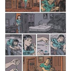 Cela est très bien mis en valeur par le récit, sa construction (découpage et mise en page dynamiques, recours au flash-back…) et par l’énergie placée dans le dessin. Ce dernier, bien que parfois porteur de quelques maladresses (notamment au niveau de certaines proportions et postures des personnages), véhicule par son aspect semi-réaliste un décalage qui densifie l’aventure. Quant à l’efficacité redoutable du scénario d’Yves Grevet, elle peut rappeler celle d’un Jean Van Hamme, tout en ayant une orientation « young adult » intéressante.