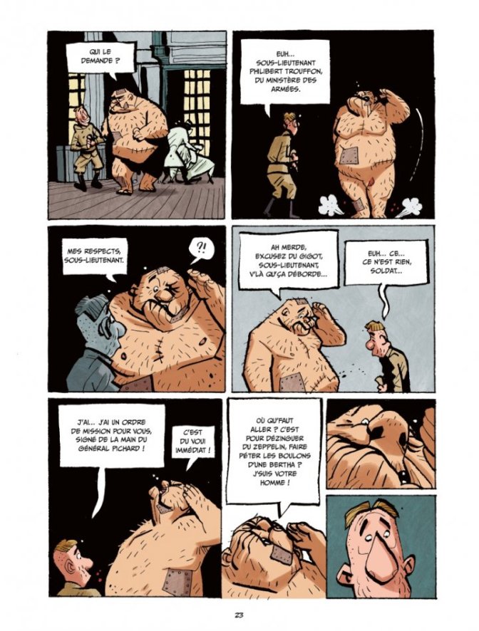 Reconnu pour la qualité de ses histoires – on se souvient en particulier de l’excellente série The Grocery, chez Ankama –, le scénariste Aurélien Ducoudray imagine avec Va t’en guerre un road movie pendant la Grande Guerre aux accents picaresques. L’histoire rocambolesque et riche en rebondissements met en scène des personnages truculents et archétypaux : la femme ouvrière, la voyante du tout-Paris, le soldat « planqué » baptisé « Trouffon » qui ne jure que par la grandeur de la France, l’héroïque Poilu, le général incompétent…