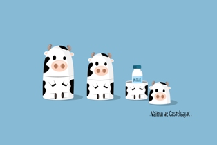 J’ai une expo le 10 octobre dans une galerie qui s’appelle la milk factory. C’est une galerie qui est hébergée par les produits laitiers et qui ouvre ses portes à des artistes pour faire des trucs sur l’univers du lait. J’investis la galerie avec des animations, des petits dessins-animés, des illustrations, des volumes avec des petits personnages, des petites briques de lait, des pis de vaches.