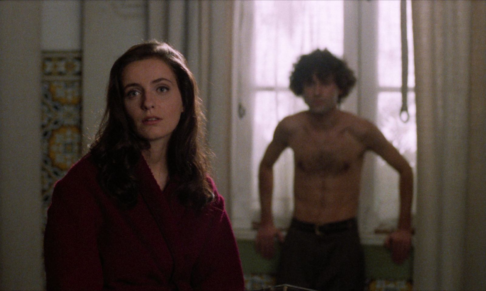 Manoel de Oliveira ne montre jamais de scènes de sexe à l’écran. Il les suggère. Tout se joue dans la métaphore : cette rose, par exemple, ses pétales se resserrant en son cœur, et à l’intérieur desquels se glissent les doigts de la jeune Ema, qui préfère lire plutôt que prier. Le rouge de la fleur en appelle à une dimension utérine ; le reste n’est que poésie. Puis, cette scène entre Ema et l’un de ses plus proches amis, où ce dernier allume une cigarette. Ema en sort une de son sac et se penche, juste au-dessus de lui, pour que le bout touche la braise de sa cigarette. Elle inspire, et c’est presque un baiser inavoué, par objets interposés.