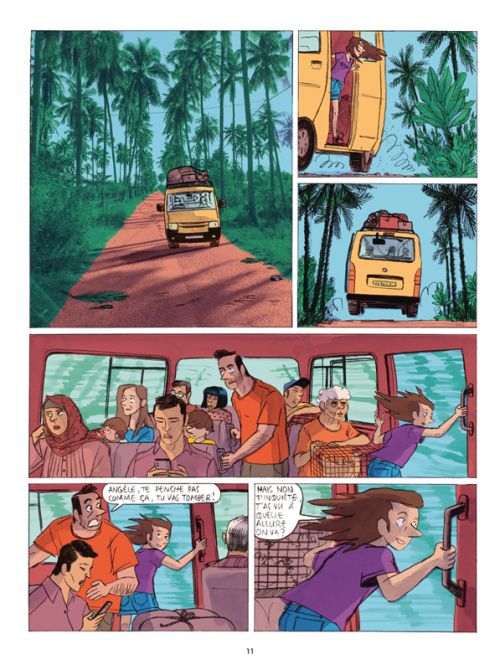 Les pages sont, à l’image des sujets traités, plutôt chaleureuses, pleines d’humanité et de solidarité, dans leurs couleurs et les visages, même si parfois un voile semble les gagner : les pirates somaliens ne sont pas dépeints avec un pessimisme chancelant, mais bien comme le reste, et c’est ce qui contamine l’impression d’ensemble. De fait, le monde n’est ni idyllique, ni cauchemardesque. La tempête, crevant certaines pages de ciel noir et d’arcs électriques, ne provoque pas davantage d’effroi qu’une séquestration en pleine nuit, avec l’idée de fracasser un crâne qui se repose. On retrouve ensuite les enfants, qui ont mieux dormi que les parents, qui vivent malgré les dangers, et le dessin donne clairement à voir cette dualité pourtant évidente de la vie elle-même.