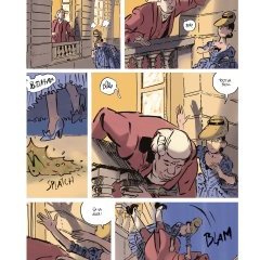 Critique : Bâtir une uchronie sur un principe de modification du paysage est une valeur sûre, en modifiant la source d’énergie ou le vainqueur d’une guerre originellement perdue, c’est une chose. Construire une réalité altérée avec un profil similaire à la véritable Histoire – ici celle de la France de Louis XIV, avec son château de Versailles, les rues fangeuses parisiennes et des appartements cossus – est une autre paire de manche. En effet, Hosanna Chauvin a choisi de faire entrer une logique purement capitaliste du XXème siècle, la croisant avec ce principe antique du cursus honorum romain qui permettait de gravir les échelons et d’acquérir fortunes avec responsabilités, le tout dans la période de la monarchie absolue française. L’idée est bonne, mais c’est sa mise en place qui étonne autant qu’elle fonctionne : avec un système de curseur placé en haut de planche qui indique la mise à jour de l’échelle sociale, mais aussi des pièces qui tombent dans une escarcelle à la façon d’un jeu vidéo, on n’est pas loin de certains épisodes d’Il était une fois l’Homme. Cette division en chapitres et ces petites précisions graphiques permettent une lecture facile, qui accompagne celle dont on devine qu’elle finira au plus sommet, quitte à se brûler les ailes. Les moyens justifiés par la fin sont l’autre atout de ce roman de l’ambition, sur ce que La Bruyère dénonçait déjà en son temps : éviction de rivales, humiliations ou meurtres, usage de charmes ou de rumeurs, la palette est large et violente, et l’on notera que la fin se rapproche de celle des moralistes, comme La Fontaine ou Bossuet, puisque quelques uns font preuve de sagesse, de loyauté et sont cités en exemples. Le passage du duel d’orateurs est dans cette veine, qu’un Damasio ou un Perec n’auraient pas reniée...