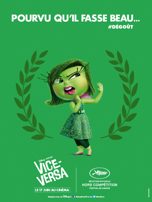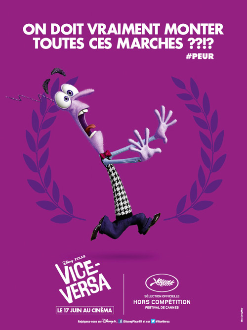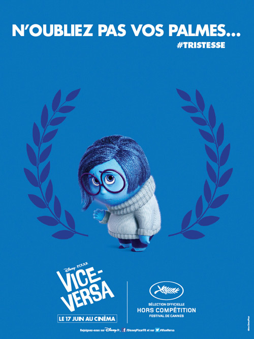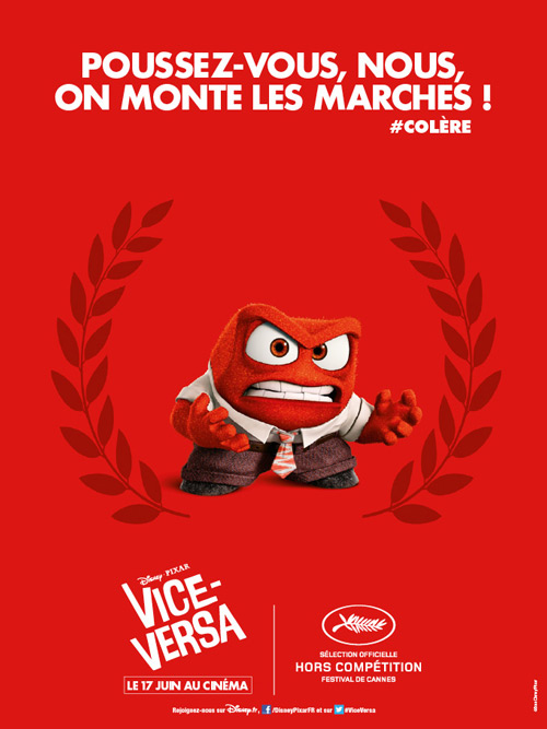 Pixar s’y préparait depuis quelques temps, et la promo est donc déjà prête. Faute de concurrence en animation pour cette saison, le nouveau Disney/Pixar, Vice-Versa qui met en scène les émotions humaines, personnifiées par de petits personnages burlesques et intrépides, sera présenté Hors compétition sur la Croisette, lors de la 68e cérémonie du festival de Cannes, qui se déroulera du 13 au 24 mai 2015.