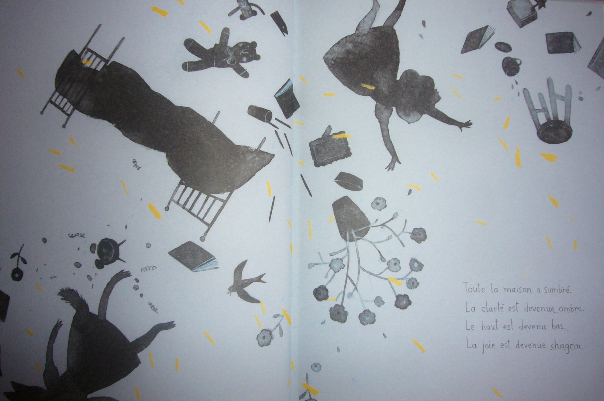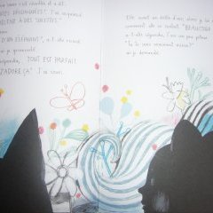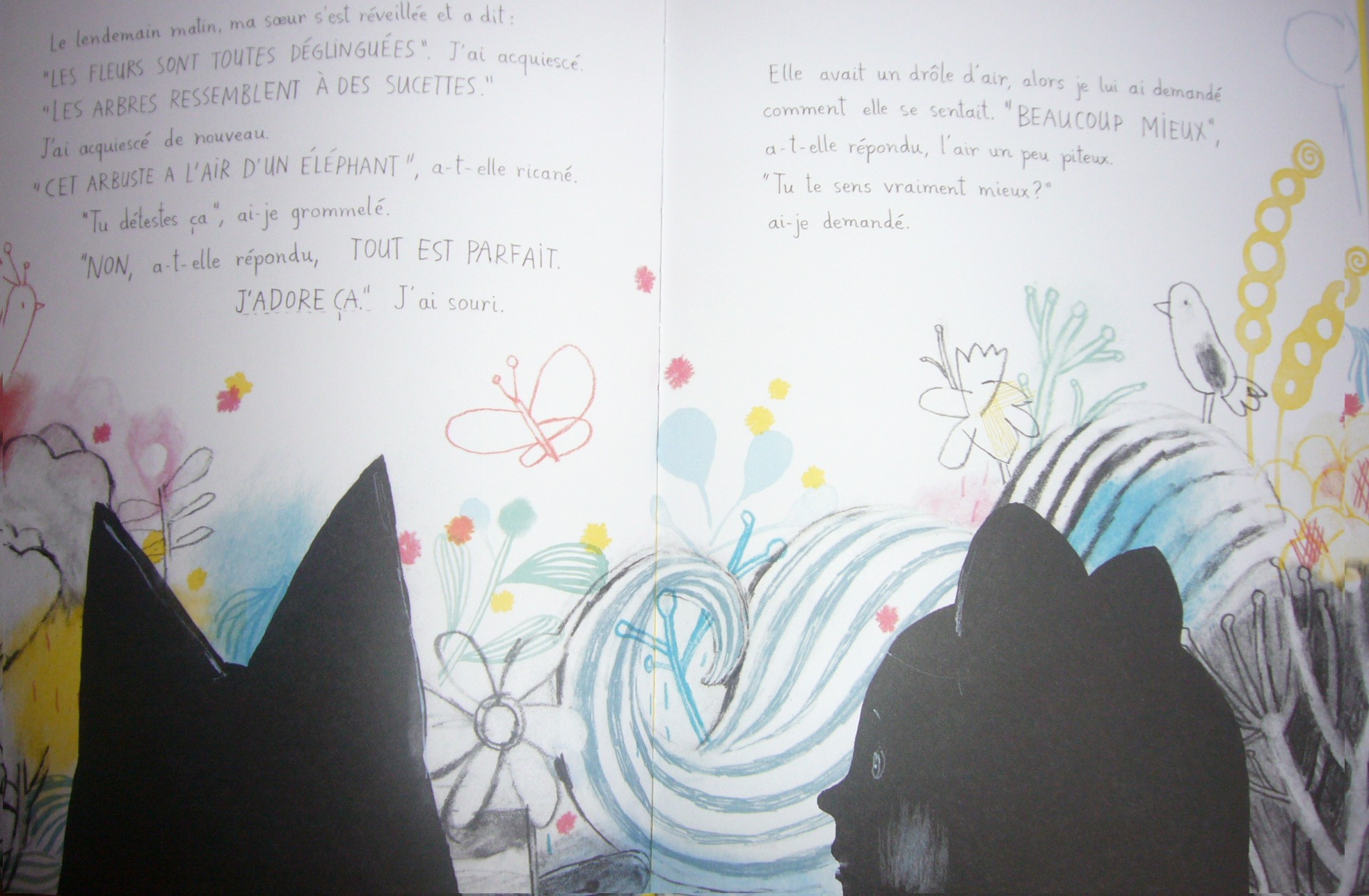 Et l’ouvrage se termine ainsi sur des notes jaunes, rouges, bleues. Un grand rayon de soleil a traversé la palette d’Isabelle Arsenault, Prix du Gouverneur général dans la catégorie illustration jeunesse de langue française en 2005 - une des plus grandes distinctions littéraire du Canada – rien que ça …