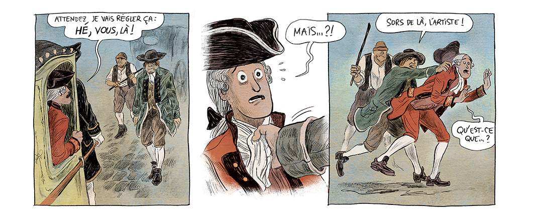 Dans ce premier tome Voltaire amoureux, nous sommes plongés dans l’ambiance d’un Paris aux toits fumants, sombre, aux guinguettes multiples, et aux rues entravées de marchands, en 1717 sous le règne des Ducs de Bourbons.