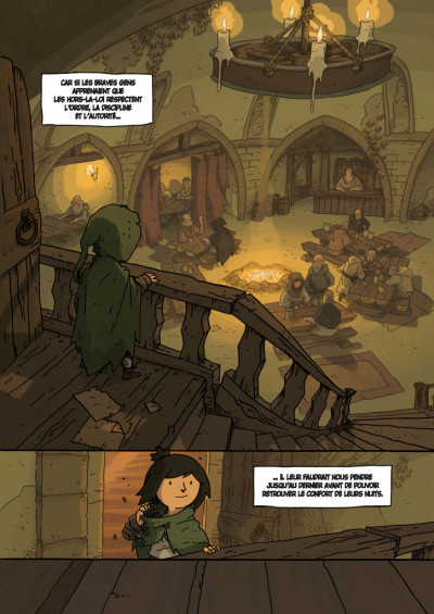 Le dessin a bien les codes de l’album jeunesse, les sectaires, revenants et rois squelettes tirant vers les premiers Elder Scrolls plutôt que les derniers. Toutefois, si les rebondissements ont un caractère rappelant le conte, il y a bien une ambiance de roman d’heroic fantasy, de légende ancienne et de jeu de rôle contemporain qui se dégage de ces pages, faisant oublier les petits points en guise d’yeux et les épées aux bouts ronds très rapidement.