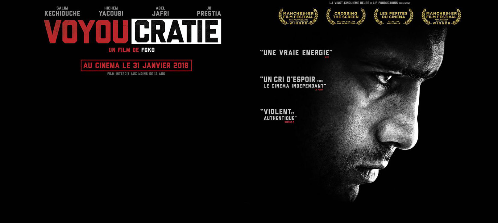Notre avis : Dès que l’on se lance dans Voyoucratie, il ne faut pas de plus de quelques secondes pour comprendre à quel genre de film on a affaire. La scène ouverture, qui suit de près le braquage d’une supérette, rappellera assurément aux spectateurs amateurs celle de Menace II Society. Pourtant, la vraie faiblesse de Voyoucratie, bien plus que ses références américaines mal digérées, apparaît dans la scène qui suit, où un montage entre des personnages faisant face à un juge souffre de l’interprétation bancale de ses jeunes acteurs. Parmi eux, même s’il est le moins pire de ceux qui apparaissent alors, Salim Kechiouche est pourtant celui qui va porter jusqu’au bout ce petit thriller urbain sur ses frêles épaules.