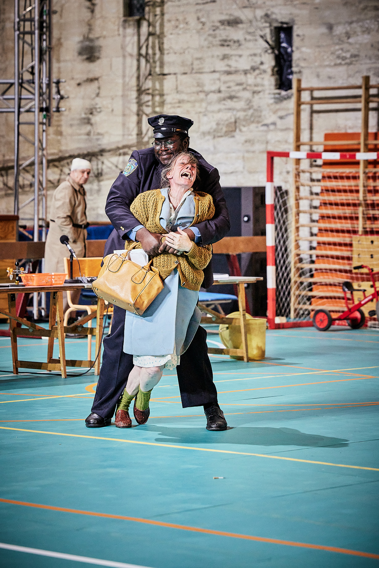 Mais le spectacle ne fonctionne pas. Le format du Palais des Papes devient même une forme de handicap dans une mise en scène assez minimaliste. Julie Deliquet est habituée à mettre en scène des fictions de cinéma. Ici, il s’agit d’un documentaire et le réalisme du propos peine à interroger la pertinence de cette mise au théâtre. On aurait pu penser qu’avec un tel sujet, une force politique puissante. Hormis la dimension de l’usure professionnelle des travailleurs sociaux, cet aspect politique du spectacle est parfaitement absent. On ne parvient pas revisiter notre propre manière en France ou en Europe de traiter les pauvres et de gérer l’exclusion. Sans doute aurait-il été utile d’adapter le documentaire à la situation contemporaine française, pour permettre aux spectateurs de s’identifier aux destins contrariés qui se déroulent sous leurs yeux.