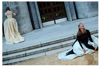 Toujours au Goethe : projection d’extraits de Antigone/Elektra (Hölderlin et Hofmannsthal), qui fut, en 2009, l’avant-dernière mise en scène de Werner Schroeter à la Volksbühne de Berlin (photo ci-contre), dans le cadre d’une soirée consacrée à Elfi Mikesch (le 20 décembre).
