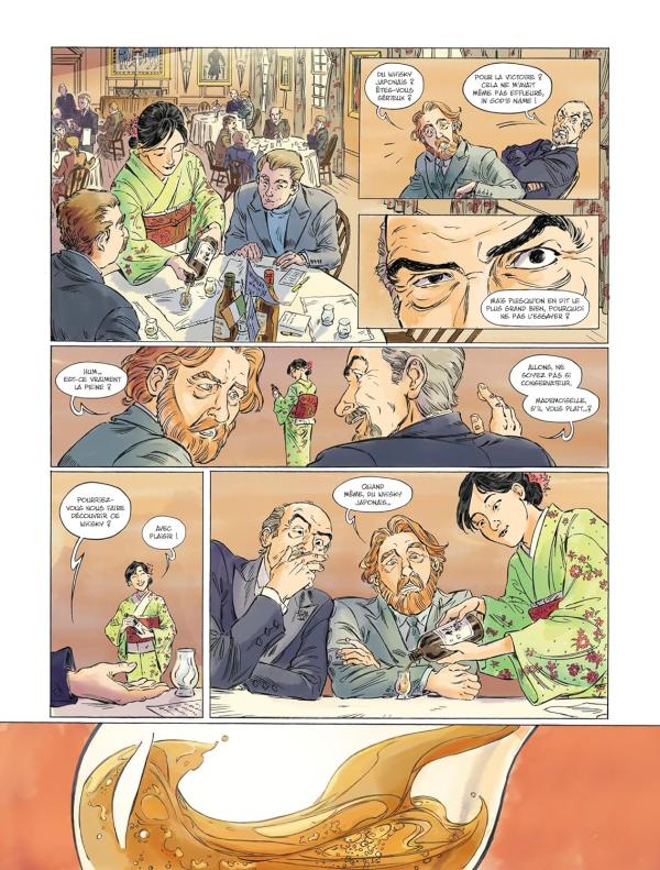Fabien Rodhain et Didier Alcante ont travaillé sur le scénario, libre adaptation de la vie de l’inventeur du premier whisky japonais : Masaka Taketsuru. Alicia Grande a dessiné cette histoire donnant vie à ce personnage sympathique et attachant. Tanja Wenisch a assuré de belles couleurs qui nous dépeignent le fil de saisons qui passent sur une vie riche de mésaventures...