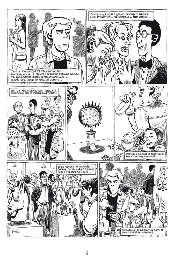 Lire White Spirit, c’est prendre le risque d’avoir une claque noire dans la figure, surtout dans sa dernière partie. Située au croisement de La peau de chagrin et Idées Noires, cette histoire choisit d’infliger le pire à son héros, et prend le parti d’en rire, voilà pour résumer l’intention de cet album qui délivre un contenu décalé, et pourtant vieux comme le monde.