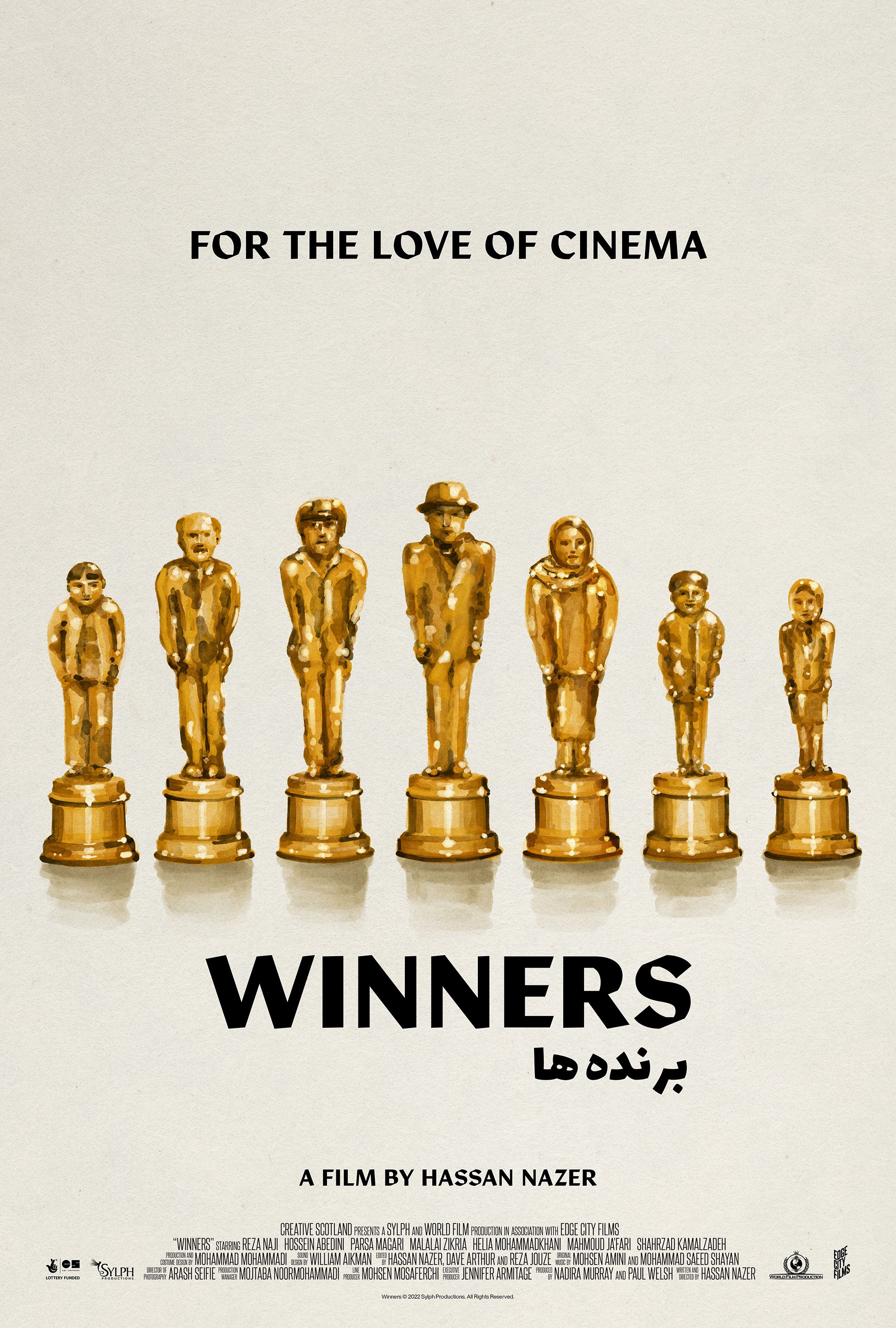 Winners constitue une œuvre drôle et aérienne qui se veut un témoignage vivant de la production cinématographique iranienne. Yahya accède à cette culture cinématographique grâce à des DVD que son patron lui laisse découvrir. Les grands noms comme Panahi, Rasoulof ou Kiarostami apparaissent sur l’écran de télévision, au grand dam de sa mère qui n’y voit que du mal. L’important pour elle est de préserver la seule chose qui lui reste, à savoir son fils, autant source de revenus que sujet d’affection. Hassan Nazer rend un hommage non dissimulé à l’acteur, Reza Naji, dont on se souvient qu’il avait été récompensé par le jury berlinois en 2008 pour Le chant du moineau et qui, depuis, n’a plus tourné. Il incarne ici l’acteur qu’il a été hier, contraint de travailler, en dépit de son admirable talent d’acteur.