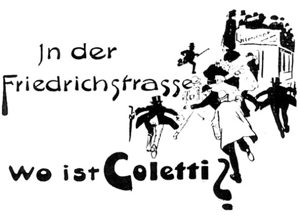 Etiré sur quatre-vingt-dix minutes, Wo ist Coletti n’a pas la concentration explosive des courtes bandes contemporaines où les Boireau, les Cretinetti, et autres Léontine et Rosalie laissaient libre cours à leurs incontrôlable énergie destructrice et ne parvient pas non plus à maintenir sur toute sa durée la fluidité, le mouvement perpétuel qui emporte les films de Jasset ou Le club mystérieux de Joseph Delmont mais le film de Mack est néanmoins fort drôle et enlevé.