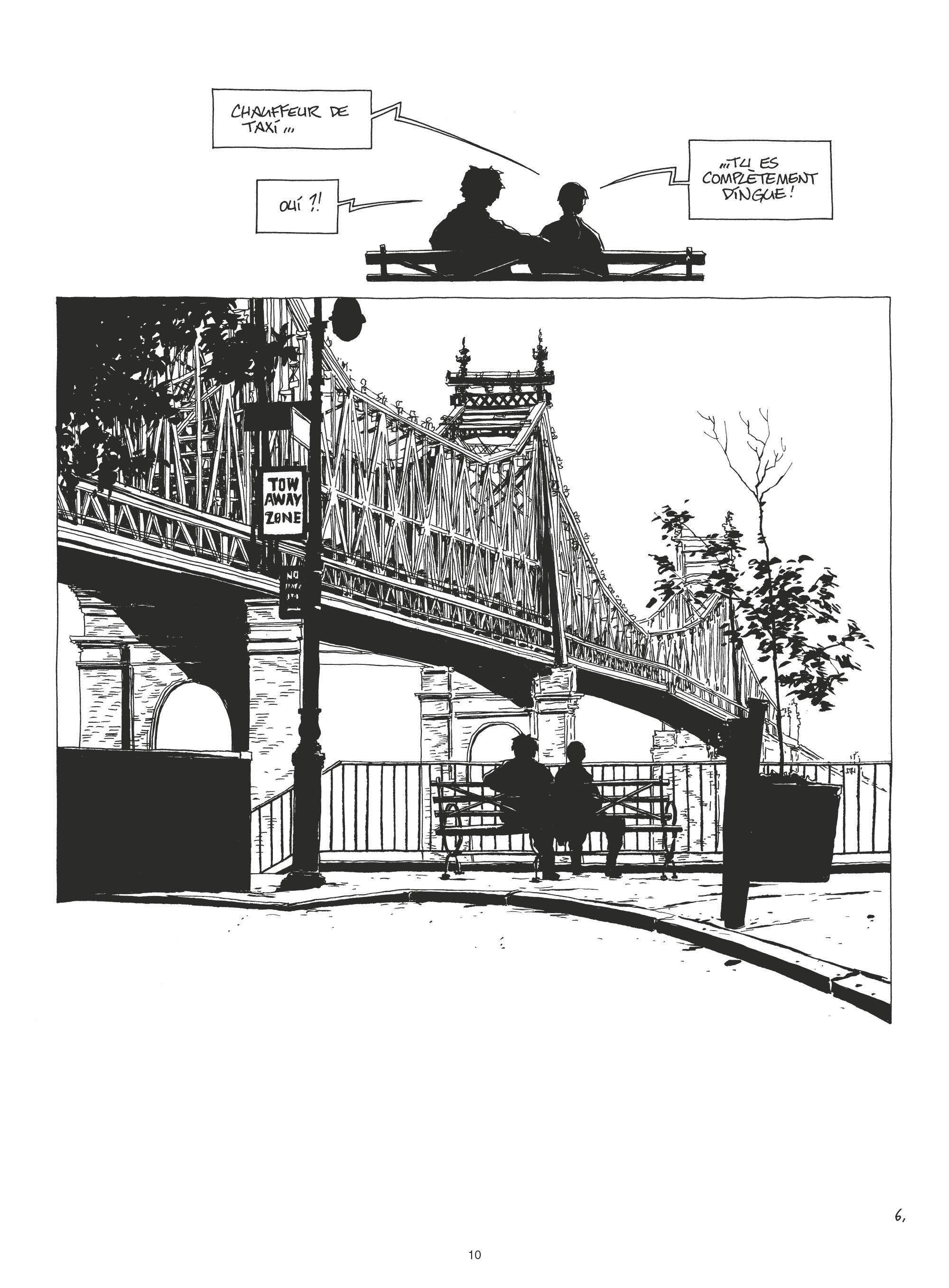 L’intérêt majeur du Yellow cab de Chabouté est l’image qu’il renvoie de New-York. La ville devient bien vite le personnage central du récit, qui multiplie les références cinématographiques, à commencer par Taxi Driver de Martin Scorcese. Le trait noir et blanc du dessinateur de Purgatoire offre une véritable immersion dans les rues de la ville et de son atmosphère si particulière. Les planches muettes qui parsèment l’album forment une invitation à observer la ville pour s’en imprégner, comme si le lecteur était lui-même dans le taxi conduit par Benoît Cohen.