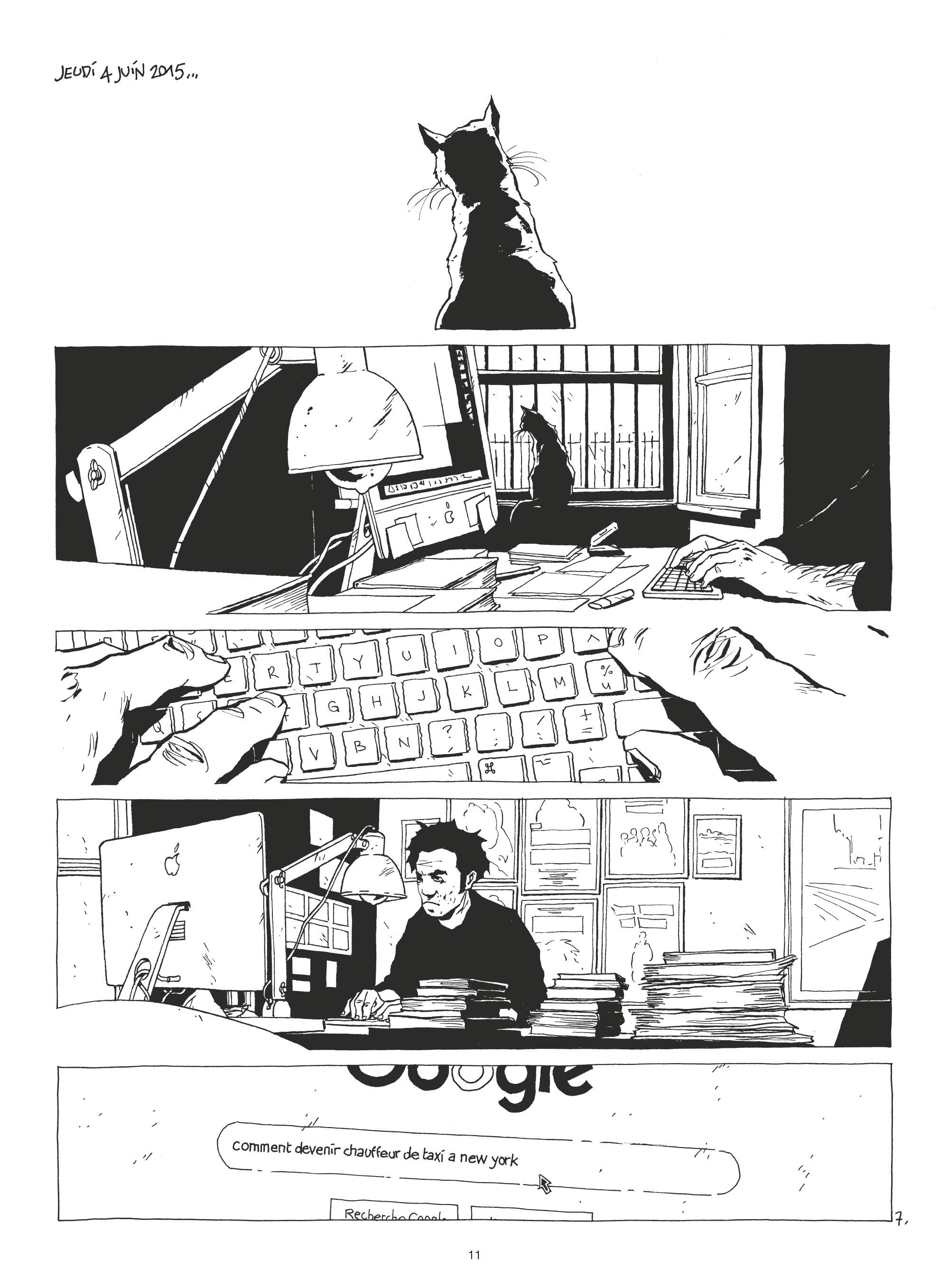 Christophe Chabouté adapte le livre autobiographique de Benoît Cohen, lequel devient chauffeur de taxi pour nourrir l’écriture d’un scénario.