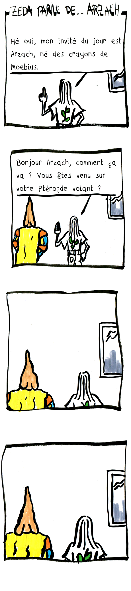 Résumé : Pour ce mois de février, Zéda rencontre Arzach, le héros créé par Moebius à l’époque de Métal Hurlant.