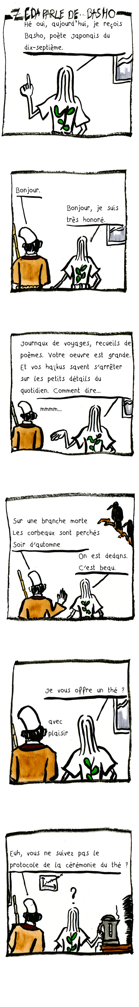 Résumé : Pour ce mois d’avril, loin des poissons, Zéda reçoit Basho, le grand poète du haïku !