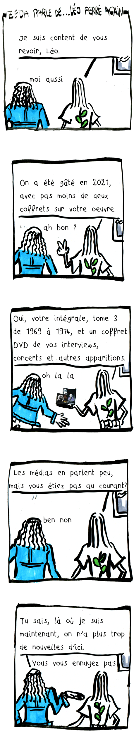Après "Zéda parle de... Léo Ferré", Zéda retrouve Léo Ferré dans cette nouvelle chronique dessinée !