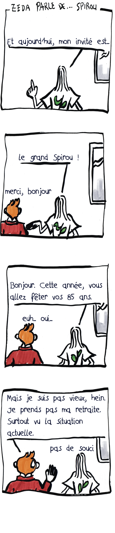 Résumé : Pour ce mois de mai, Zéda fais ce qu’il lui plaît et reçoit un grand héros de la bD franco-belge, Spirou, qui n’est pas venu seul...