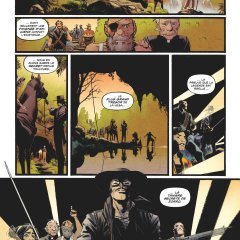 Le récit de Sean Murphy s’appuie sur le décalage entre, d’un côté le cartel de narcotrafiquants cyniques armé jusqu’aux dents et qui se déplace dans de gros 4x4 et de l’autre Zorro, personnage du XIXe siècle qui se bat à l’épée, monte à cheval et croit en Dieu et en la justice. Chez Sean Murphy, Zorro est un Don Quichotte idéaliste, en décalage avec le réel, mais qui suscite l’enthousiasme d’une population oppressée par sa capacité à susciter l’espoir en réveillant le mythe. C’est là toute l’intelligence de ce récit enlevé, qui évite de sombrer dans la nostalgie, tout en rendant un hommage vibrant au personnage. On sent que Sean Murphy s’éclate à dessiner Zorro qui multiplie les poses, chevauche son fidèle destrier Tornado, désarme ses ennemis au lasso…